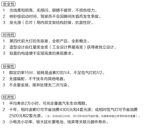 通过独自开发的超大型模拟光学计算系统,利用光学成像原理精确制导光线走向,高效利用LED所发光能,在实现严格的照度要求之同时,限制发热,从而实现了少芯片、单灯头、自然散热、结构简单、可靠性高、成本低的产品。 派生系统为电路控制、散热系统和机械结构。
